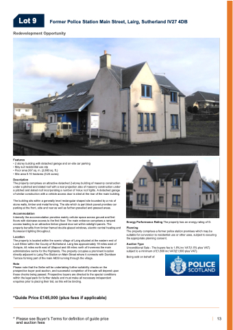 Lot 9 Former Police Station Main Street, Lairg, Sutherland IV27 4DB Redevelopment Opportunity