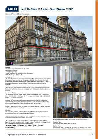 Lot 15 Unit 2 The Piazza, 95 Morrison Street, Glasgow, G5 8BE Ground Floor Office Premises