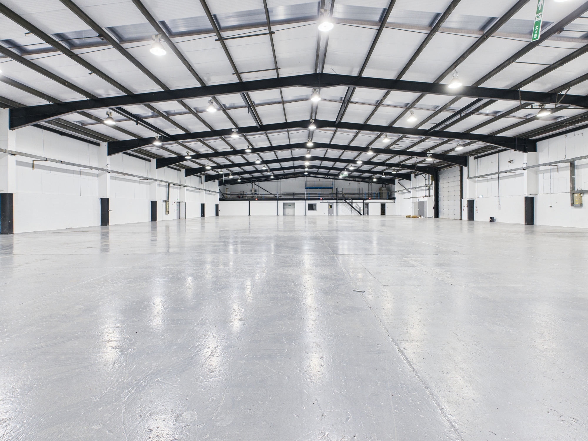 Warehouse offices have been installed within the space along with staff welfare facilities and a canteen. Above the warehouse offices is a mezzanine level which is accessed via a fixed metal staircase.