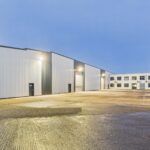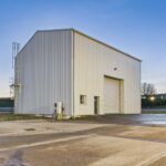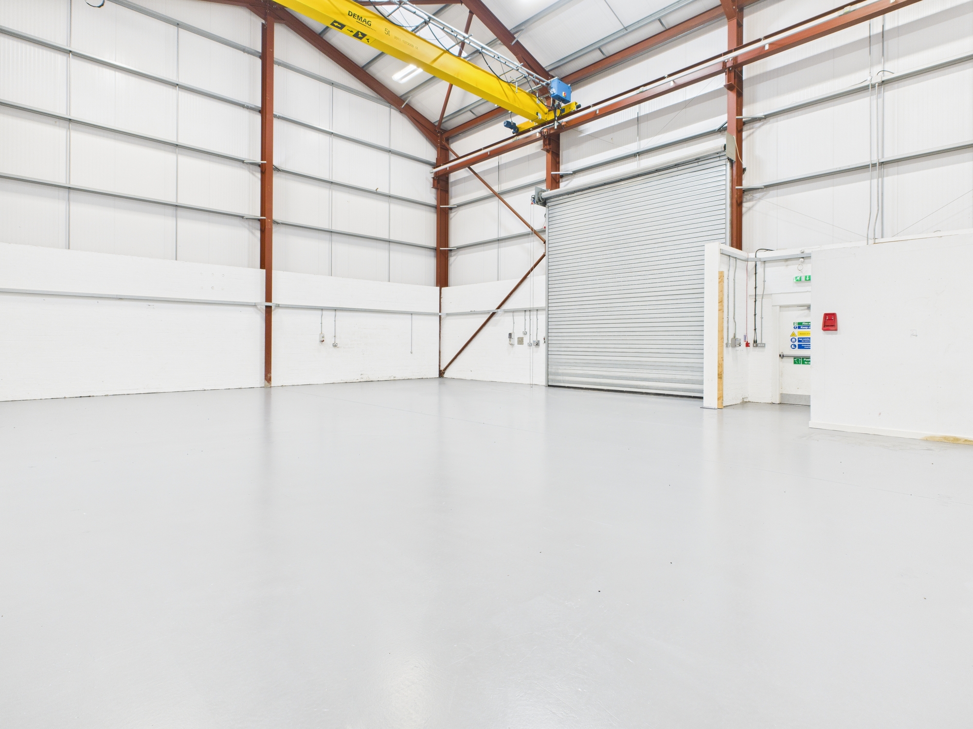The high bay warehouse is of a steel portal frame construction which has been clad with insulated metal cladding with a pitched roof over similarly clad. Internally the eaves height is 8.28M and benefits from a 5T crane. The roller shutter door measures 5.00M wide by 5.30M high