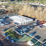 The subjects comprise a modern standalone car showroom building of steel portal frame construction, under a pitched roof. In line with its existing use, the subjects benefit from a large glazed curtain wall on both sides visible to passing traffic.