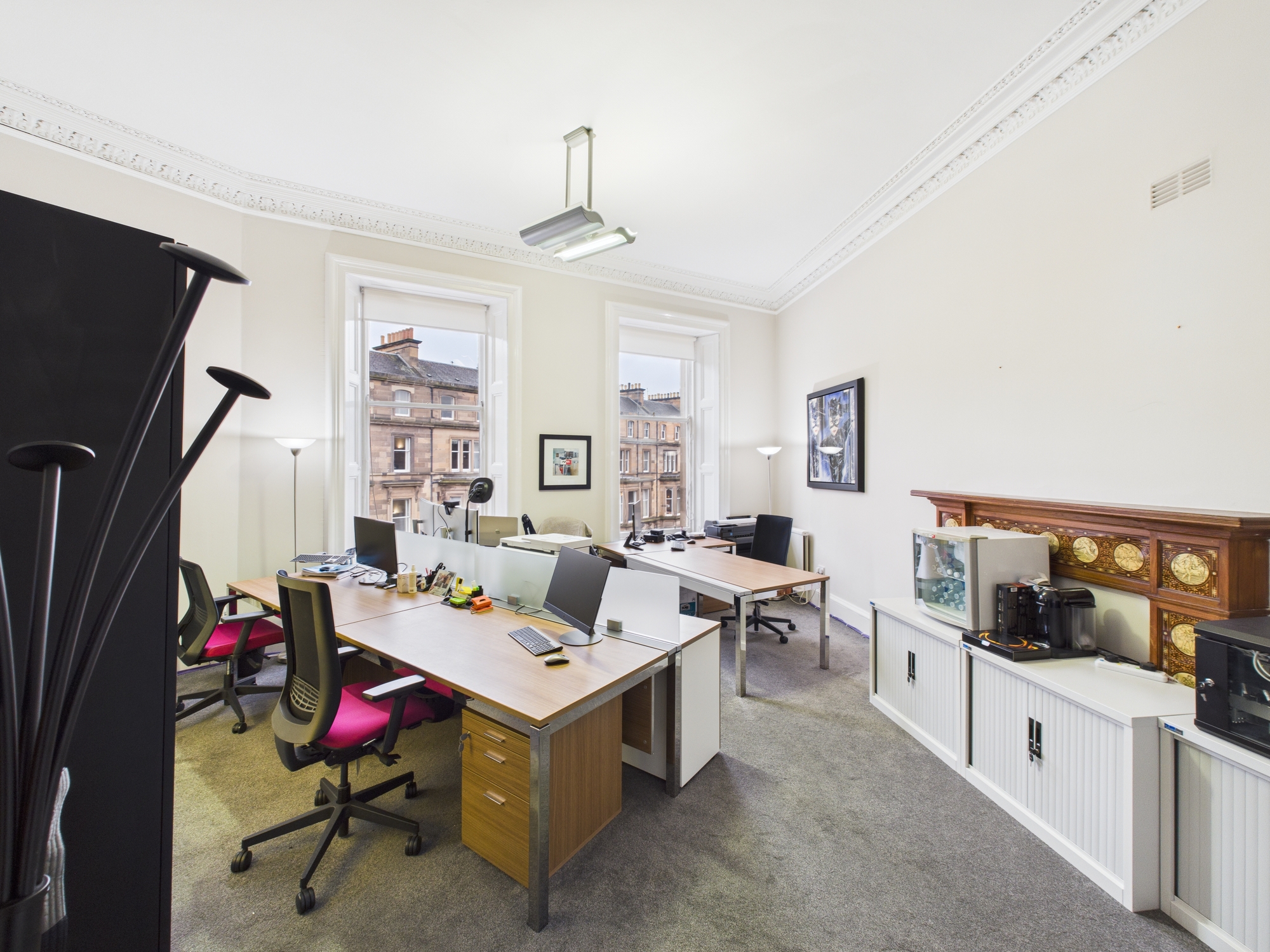 The subjects comprise an attractive Class 4 office suite occupying the second floor of a four-storey and basement Category B listed corner townhouse.