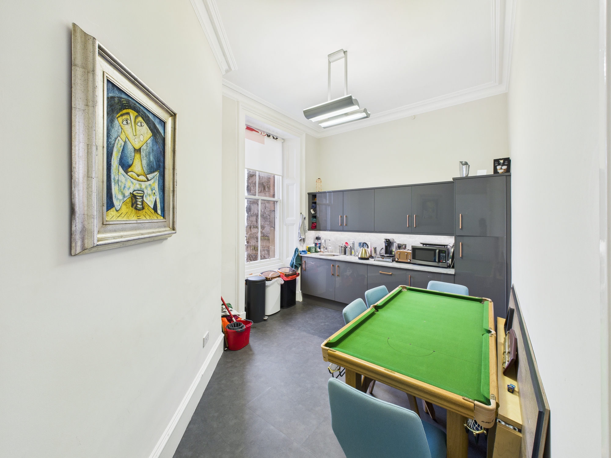 Internally, the accommodation benefits from a grand reception area, with a feature staircase and lift providing access to the office suite. The offices are primarily cellular in layout and arranged over 3 separate office rooms. The floor benefits from a kitchen and wc facilities.