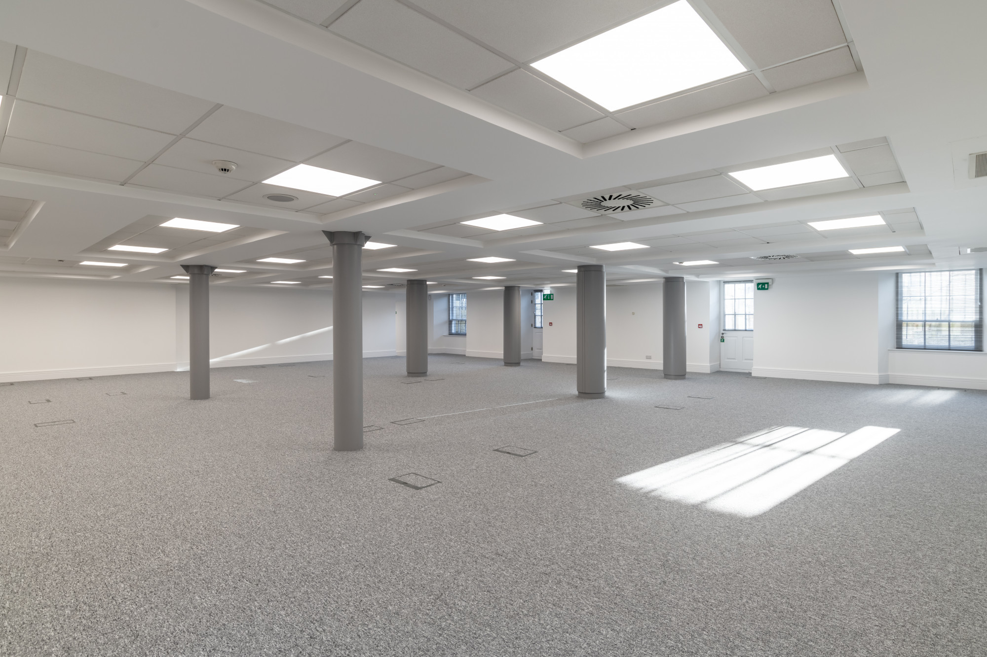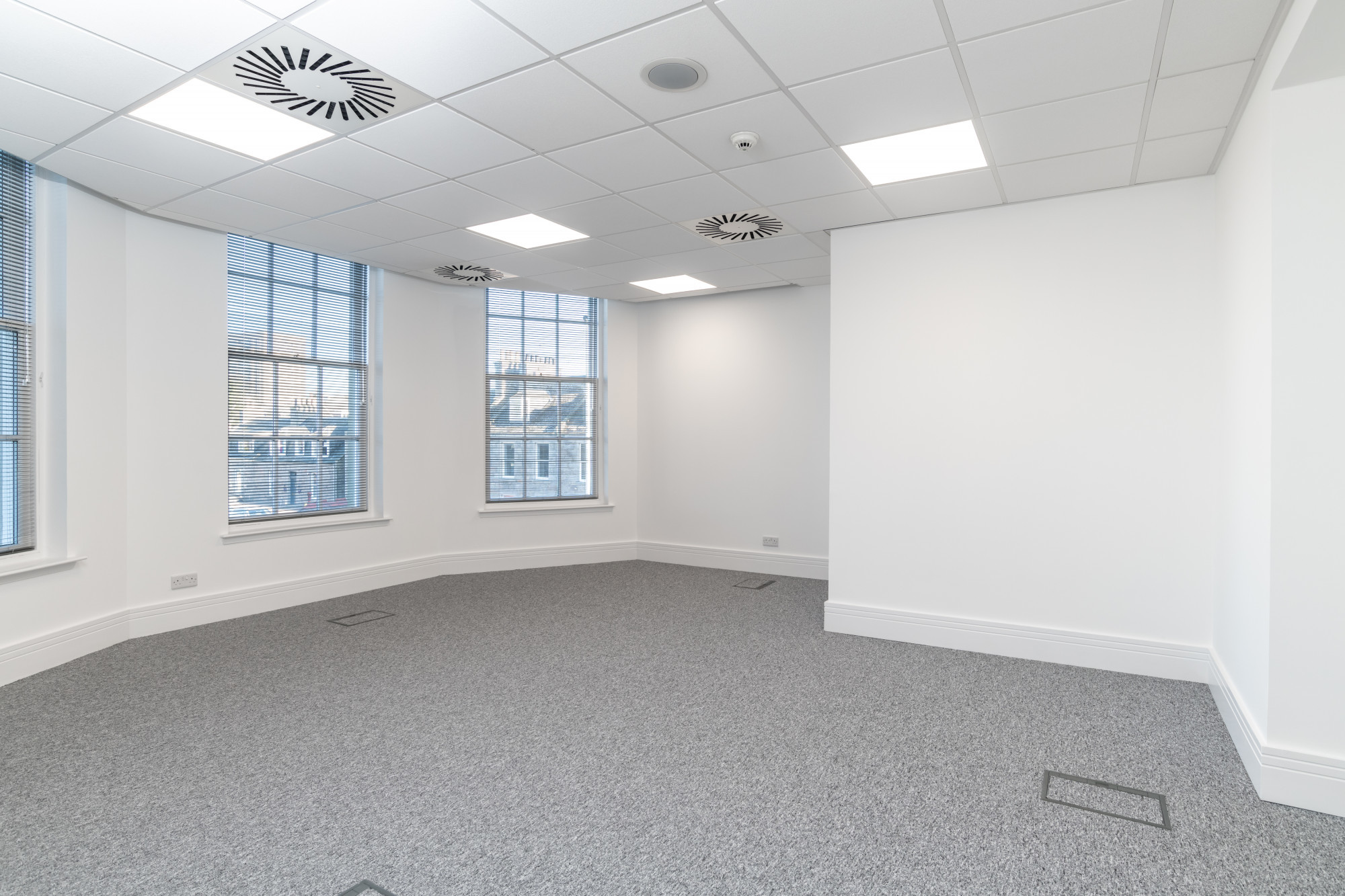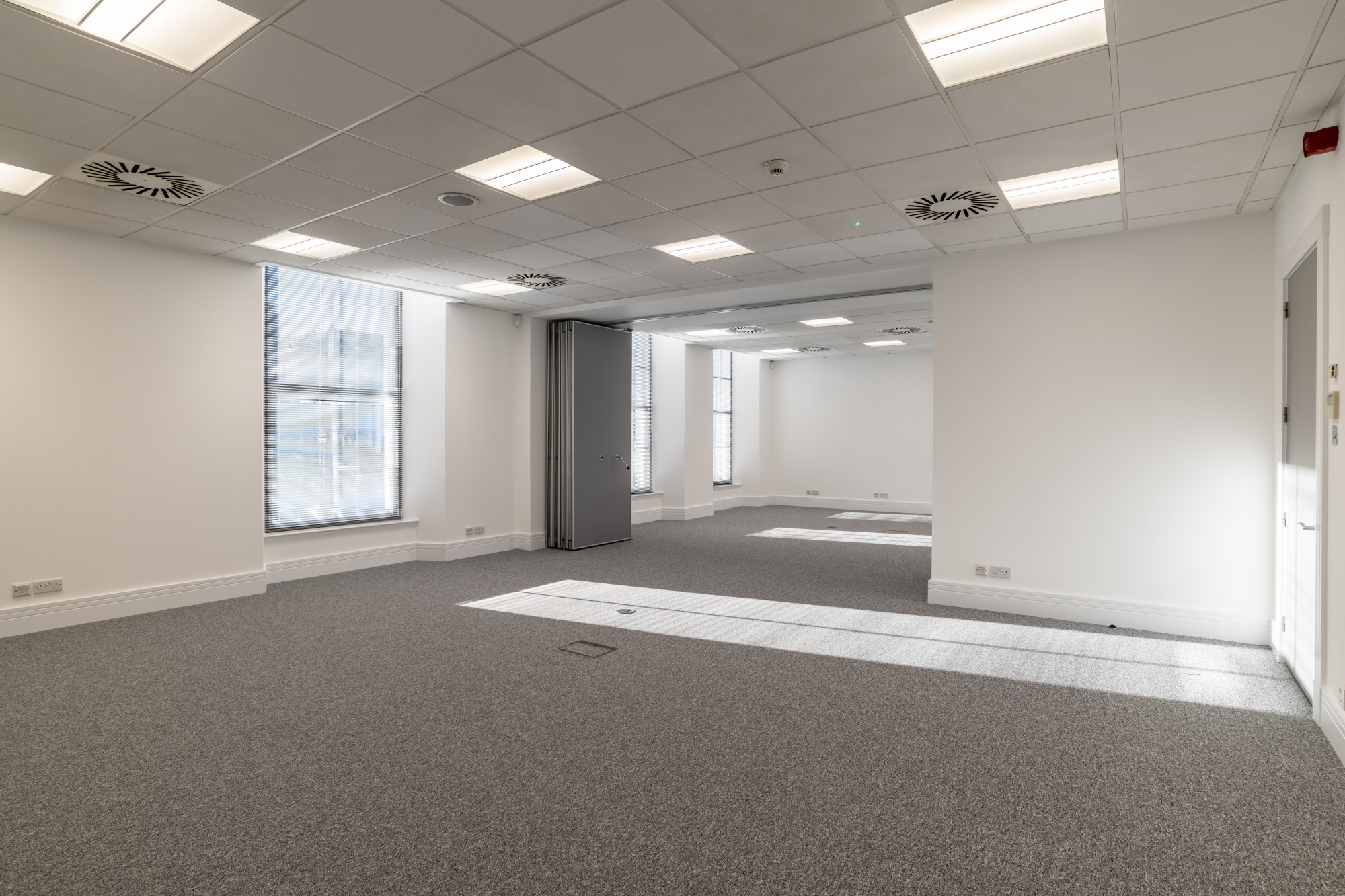 - Fully carpet tiled flooring.