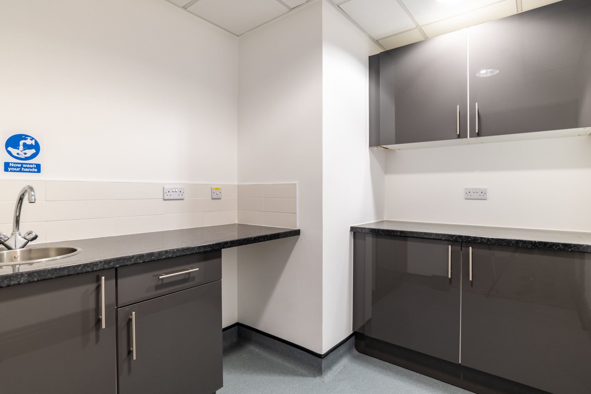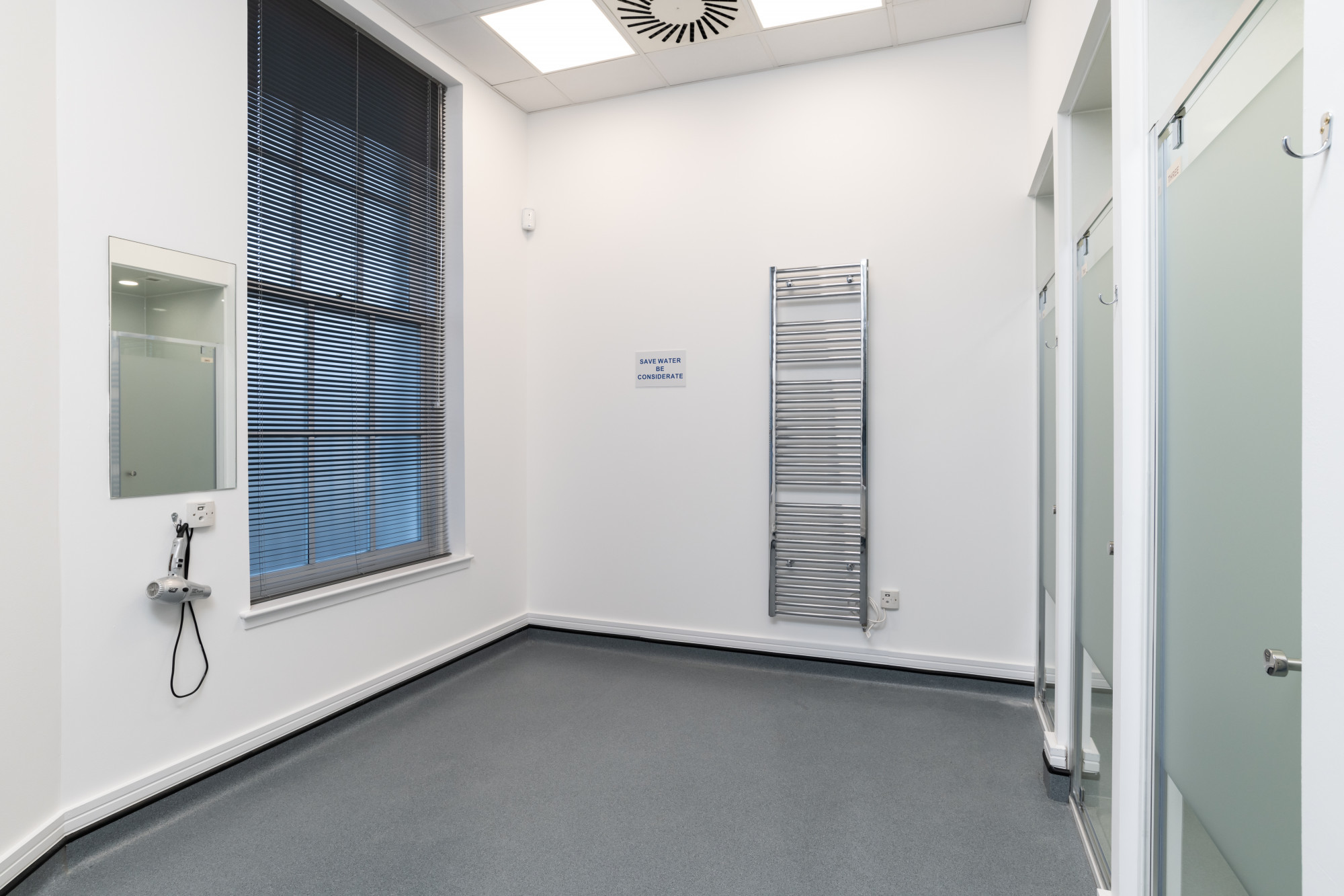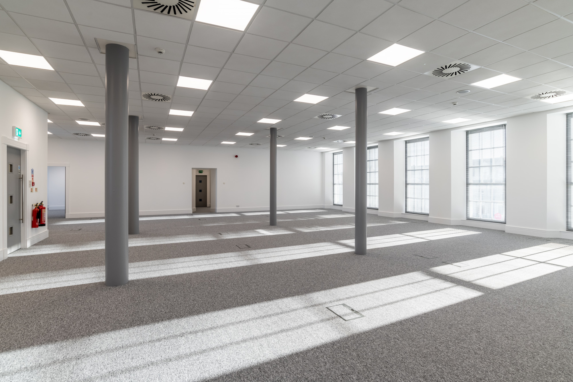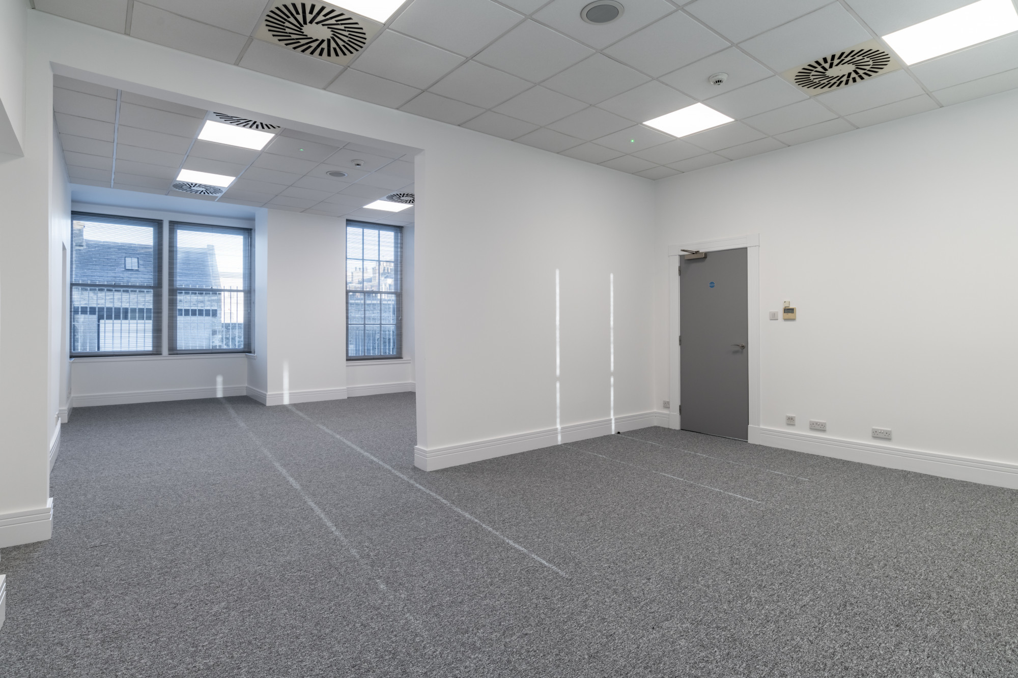 - Fully carpet tiled flooring.