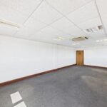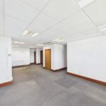 The subject property is a semi-detached, two-storey building with a modern external finish and associated parking. It includes a main entrance to the front and a secondary access point to the side. Internally, the accommodation provides office space across at first floor level, along with staff facilities including kitchen/breakout areas and communal WCs on the ground floor. The layout includes both open-plan and partitioned office areas. Finishes are of a functional standard, with typical office specifications. Externally, there is dedicated car parking to the front and side of the building.