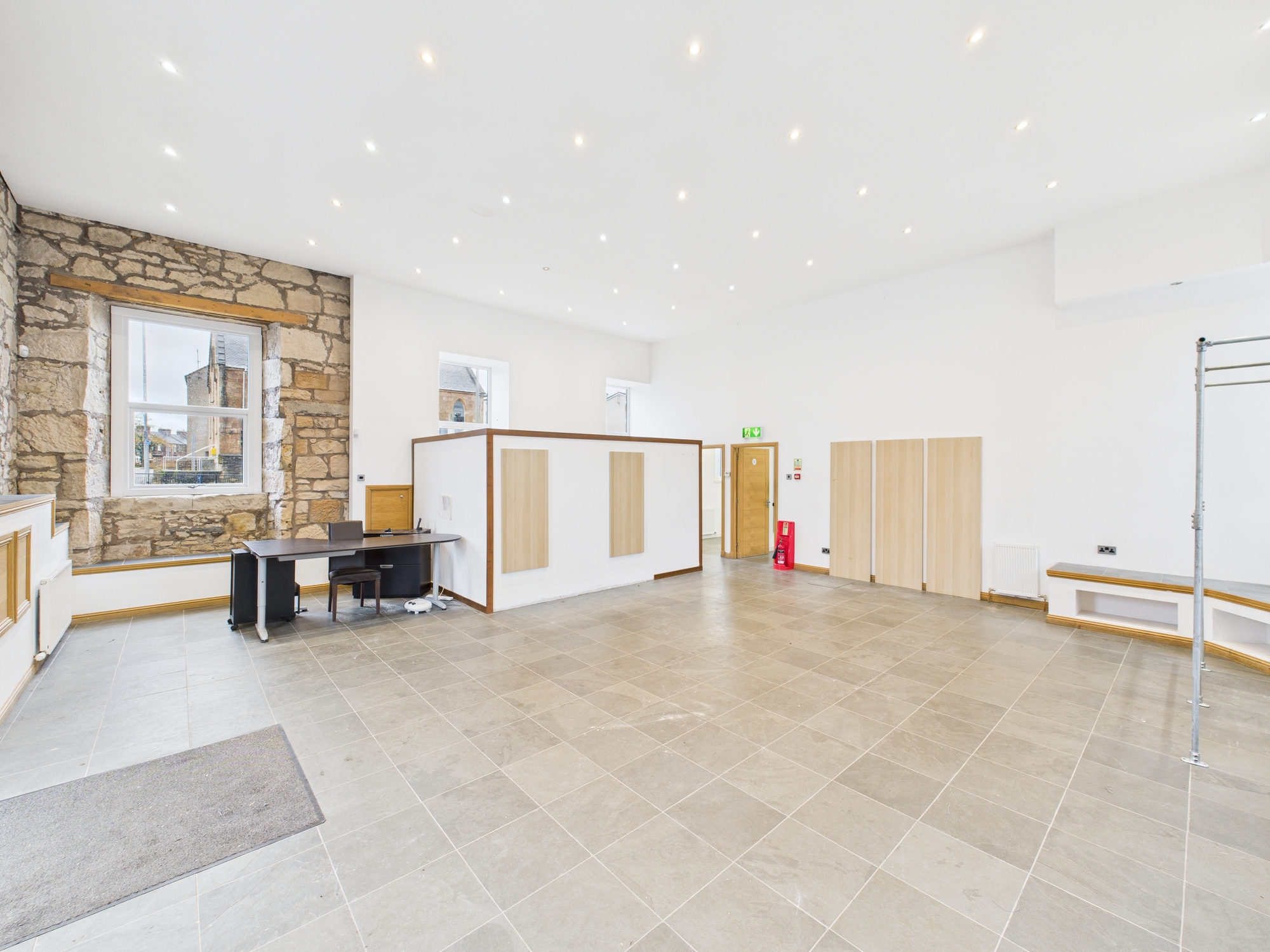 The front pedestrian entrance door and windows are all of modern uPVC double glazed. Access to the front pedestrian door is ramped providing wheelchair access.