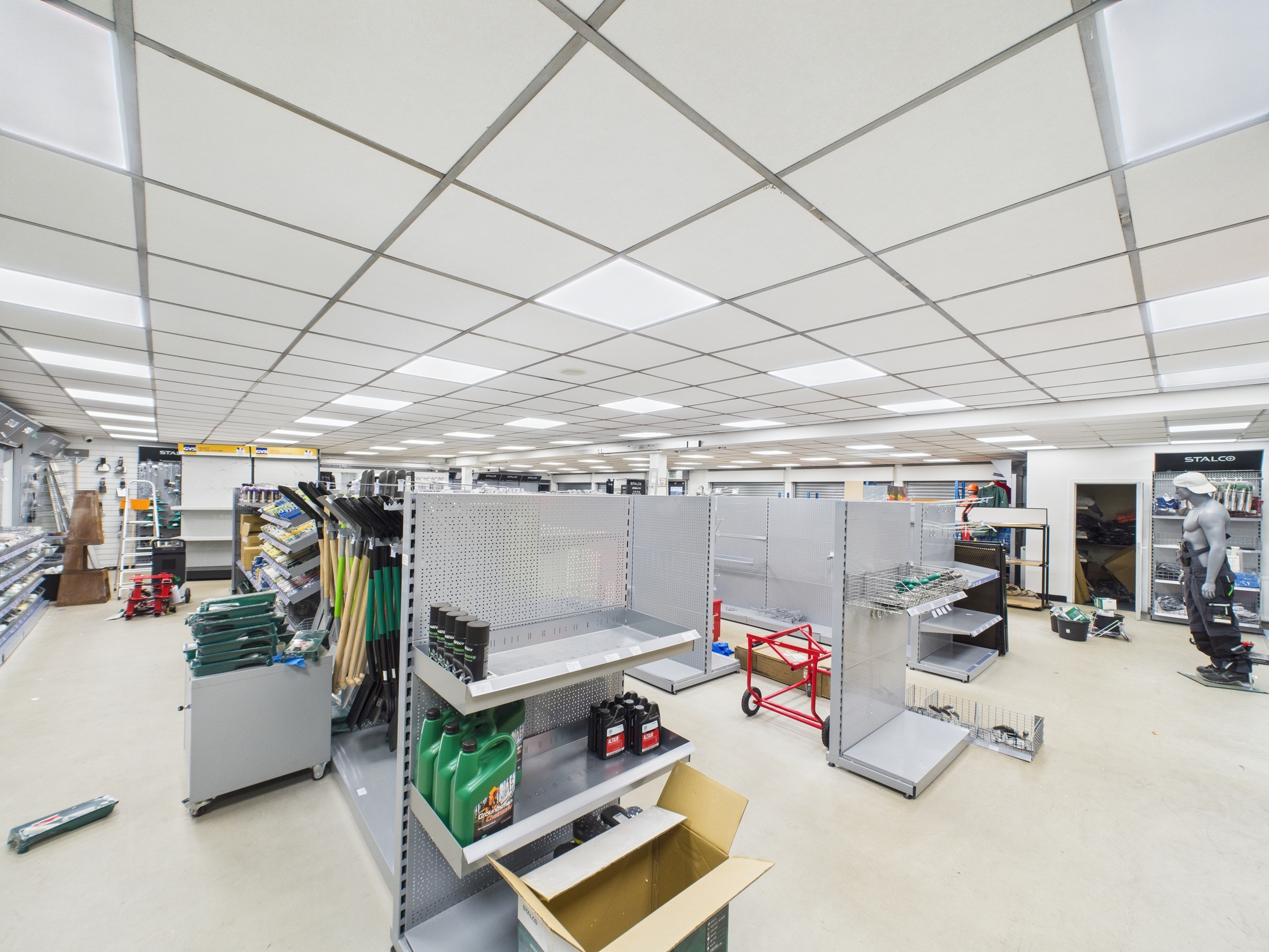 Large display windows & open-plan layout