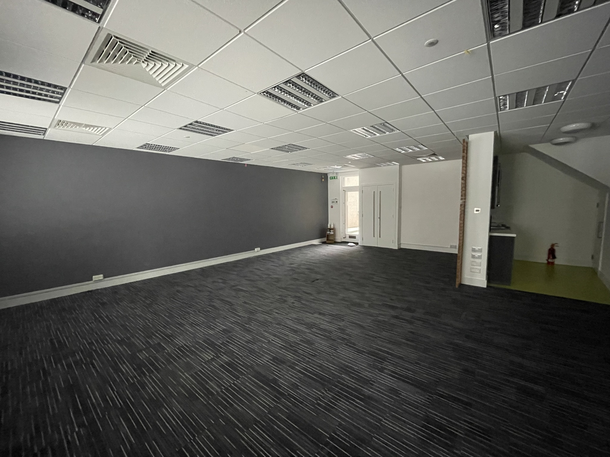 Each unit is accessed from an attractive central courtyard area. Internally, the accommodation is planned over ground and first floors and provides attractive modern open plan office space together with male, female and disabled toilets, shower room and kitchen areas. Finishes throughout include carpet tile floor coverings, painted plaster walls, suspended ceiling with LG7 lighting. Comfort cooling units are installed to most of the offices.