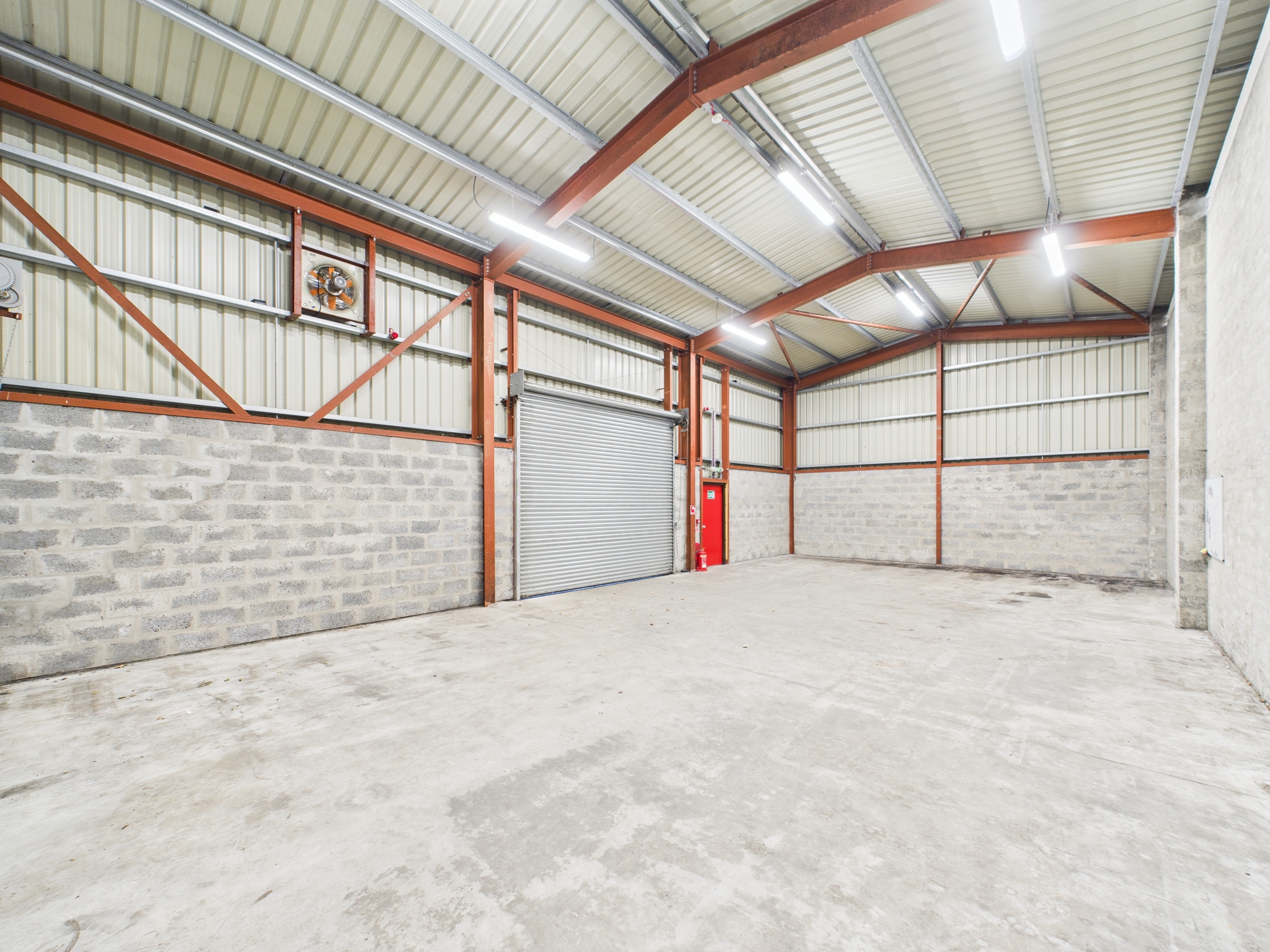 The property comprises a semi-detached industrial unit of steel portal frame construction with concrete block dado wall harled externally with a pitched roof over.