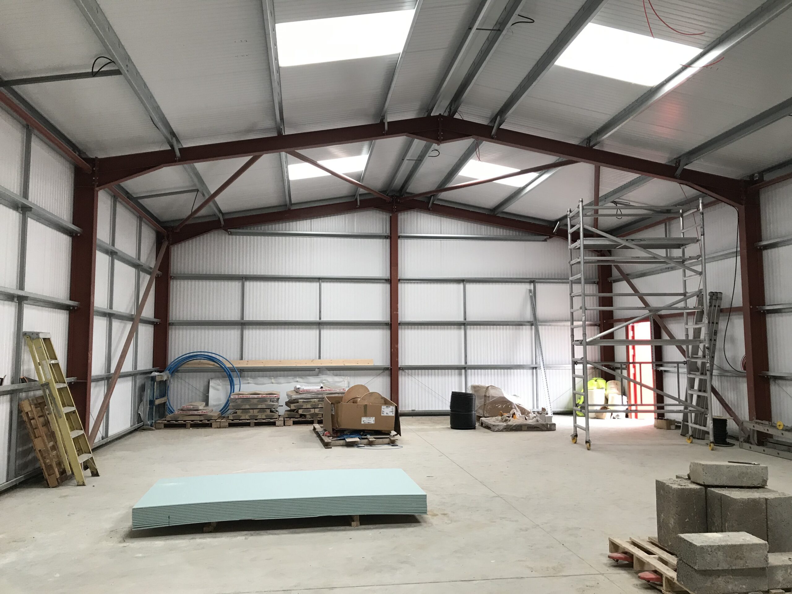 The property comprises a semi-detached industrial unit of steel portal frame construction with concrete block dado wall harled externally with a pitched roof over.