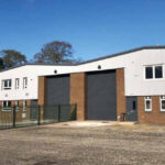 The subjects are of steel portal frame construction with the external walls being formed from concrete block to dado height externally harled with profile metal sheeting above.