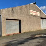 Two roller shutters provide access into the workshop space.
