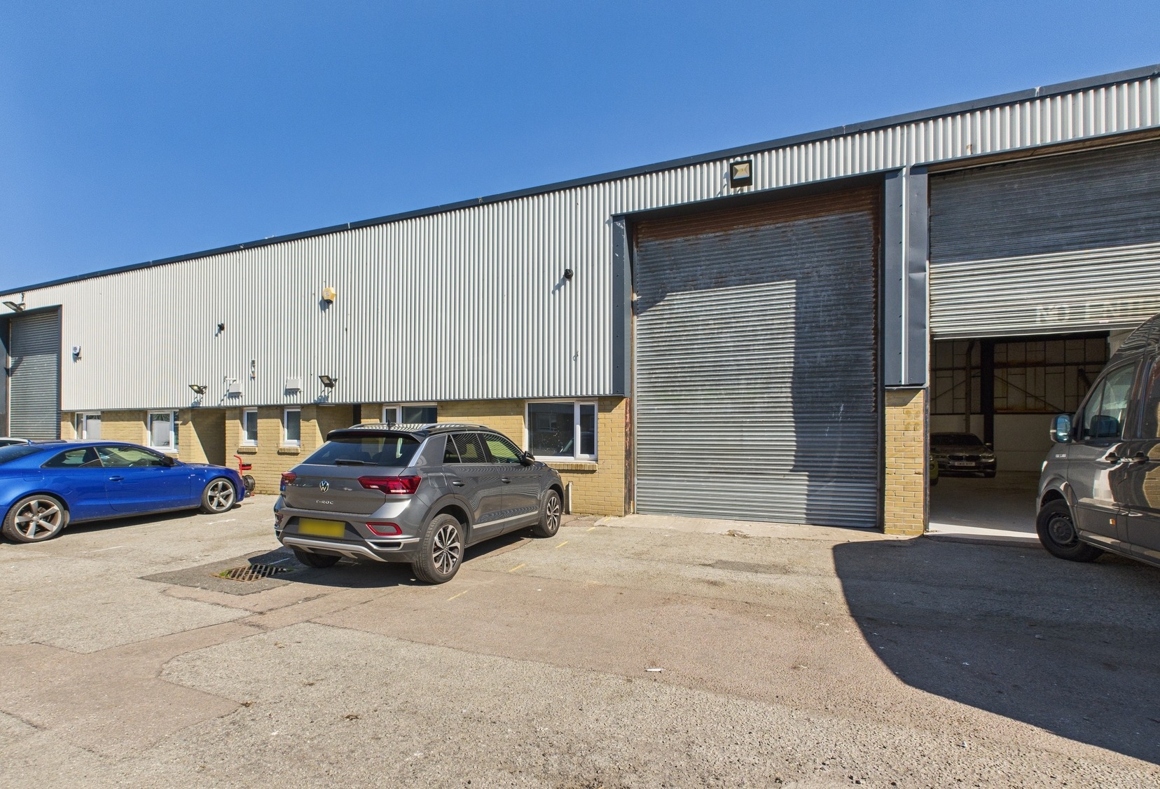 The property is of a steel portal frame construction with a pitched roof over incorporating translucent roof panels. Access is via a pedestrian or roller shutter door.