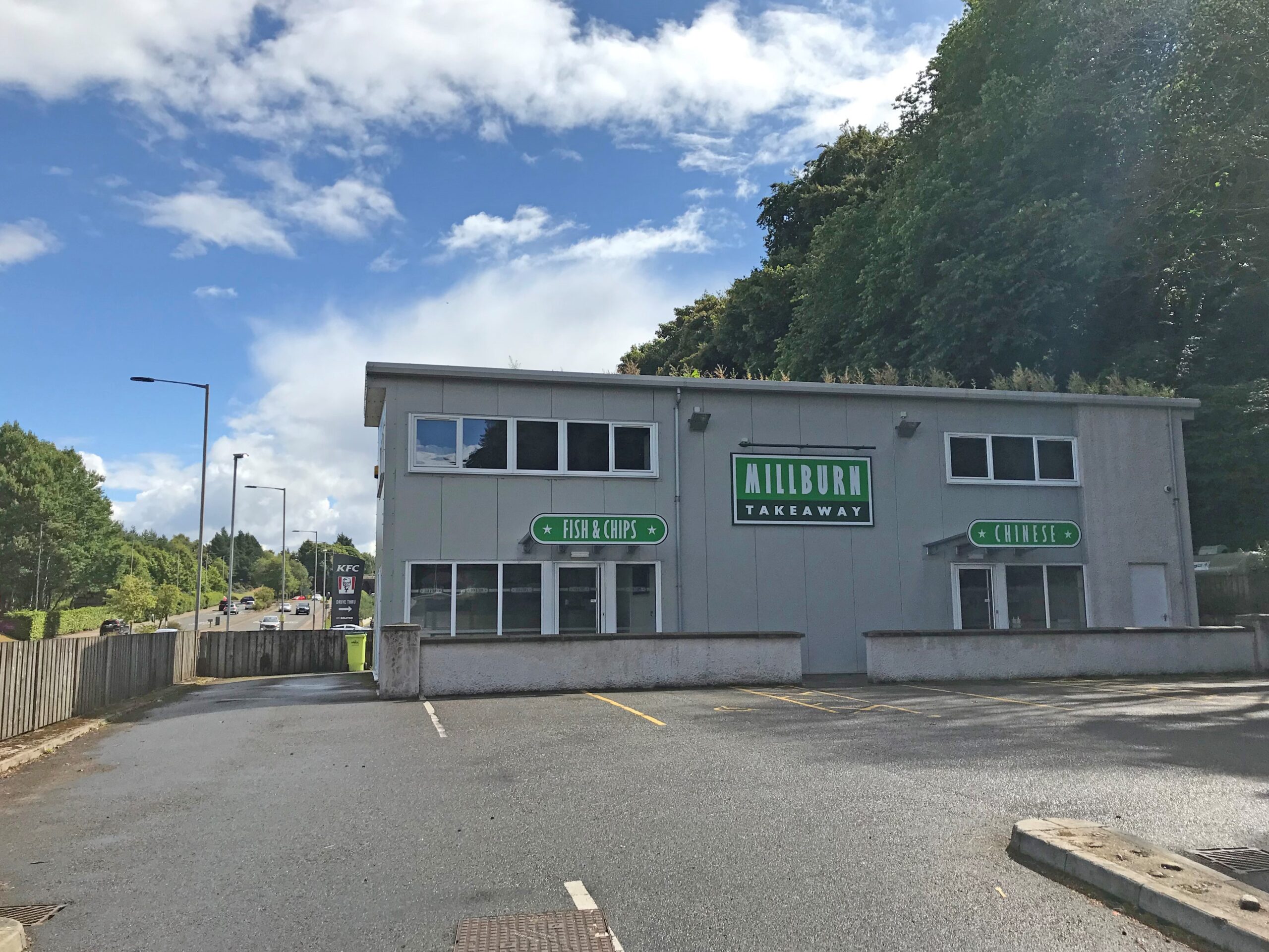 The two-storey standalone building, with 14 on-site car parking spaces, has previously operated as two inter-connecting units comprising fish and chips and Chinese takeaways. The unit is offered as a whole or on the basis of a potential sub-division to provide multiple units.